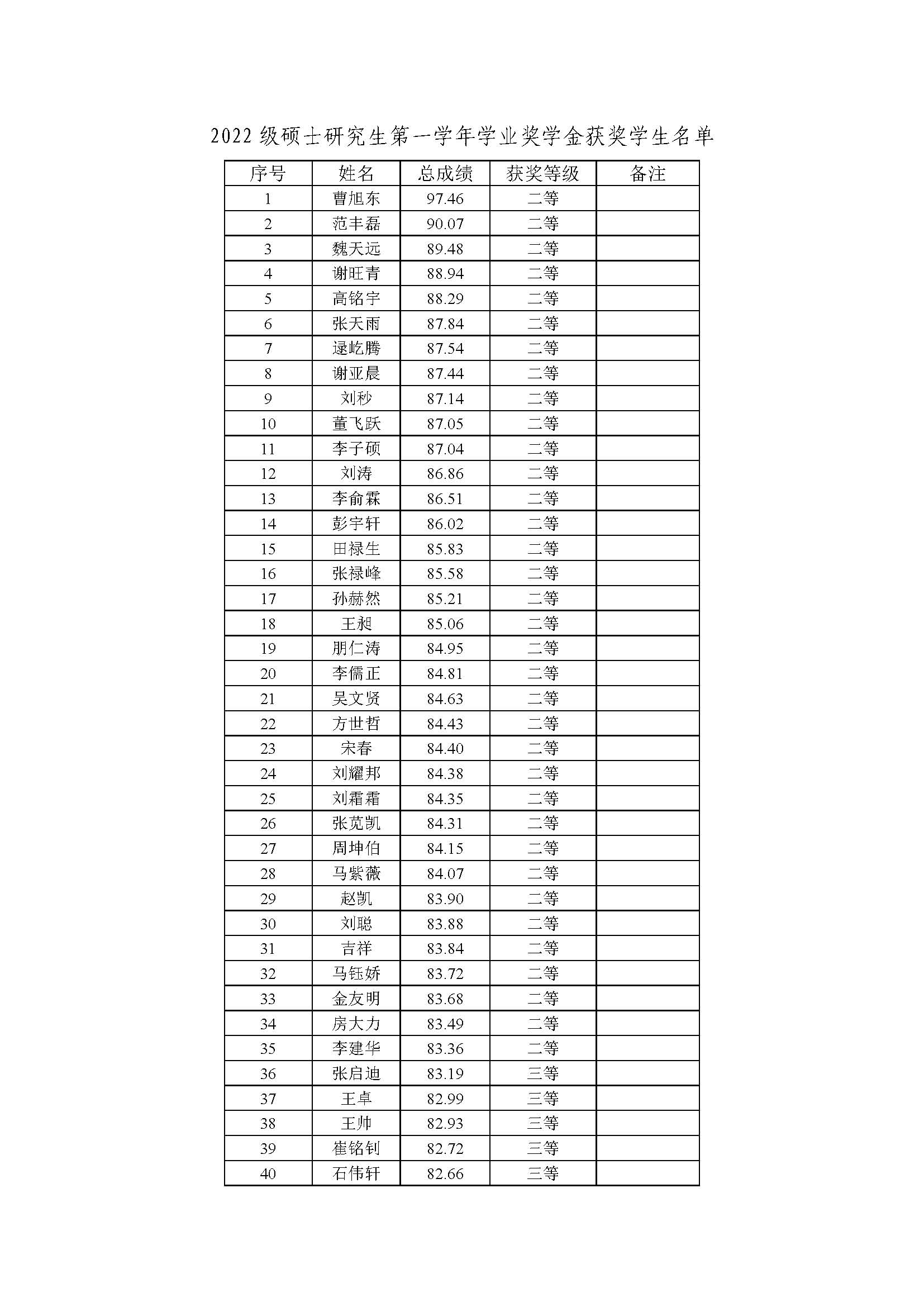 2. 2022級碩士研究生第一學年學業獎學金獲獎學生名單