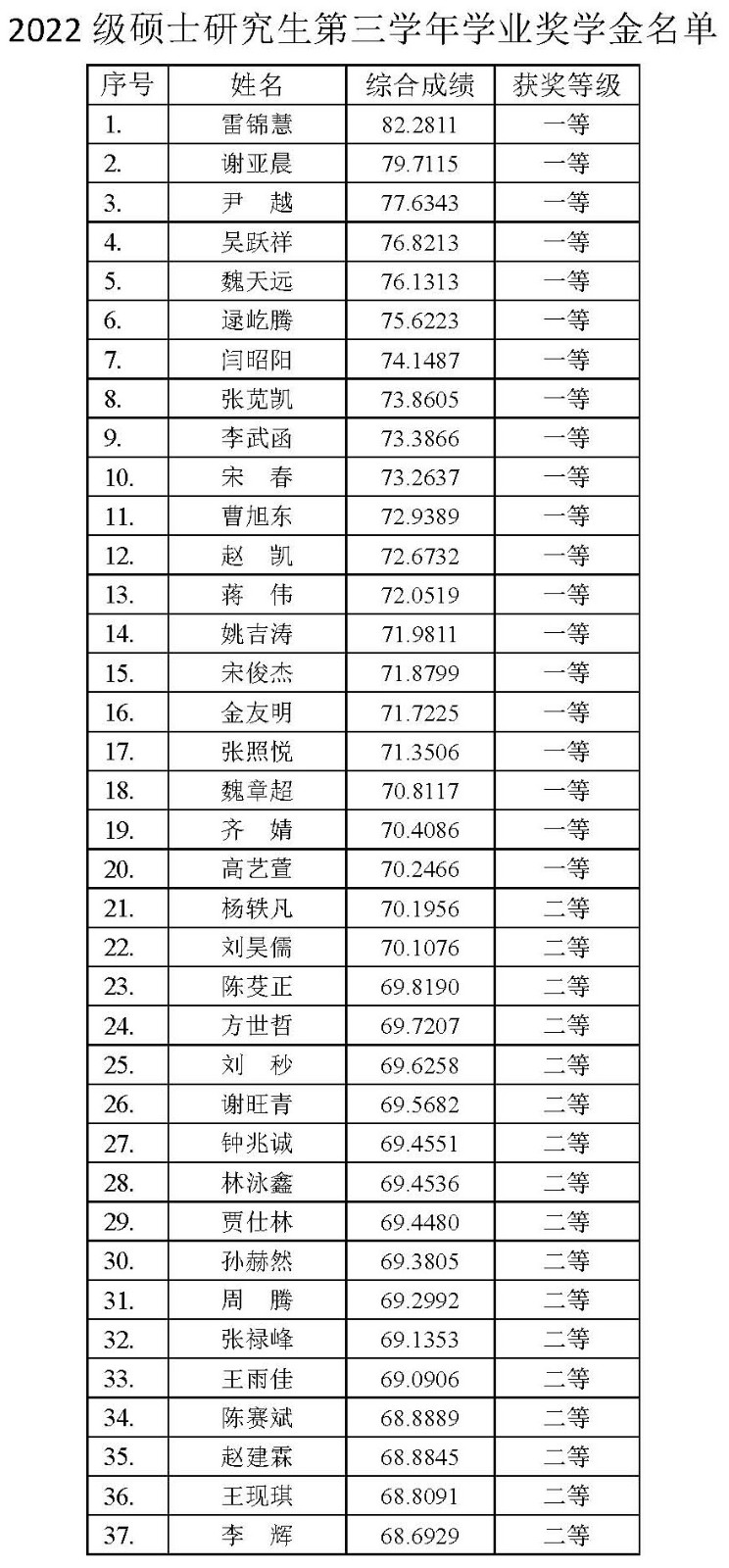附件:2022級碩士研究生第三學年學業獎學金名單