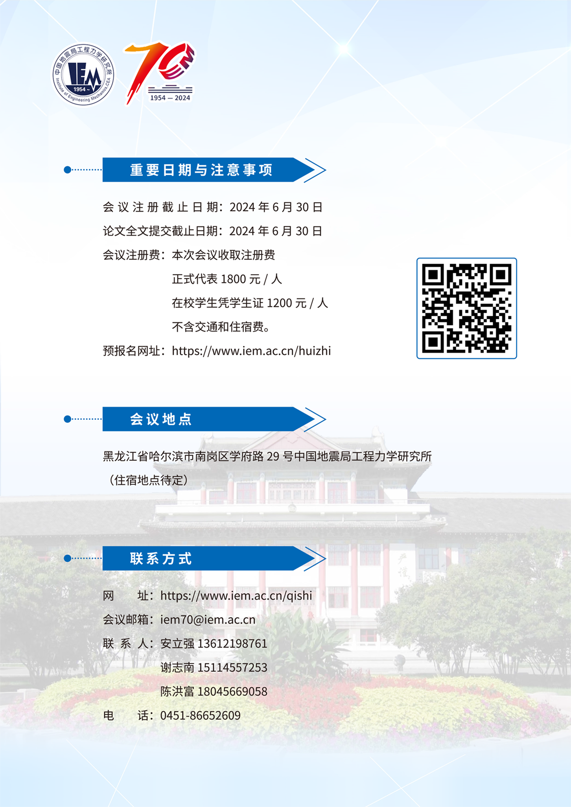 中國地震局工程力學研究所 地震工程與智慧減災研討會暨第四屆韌性城鄉與防災減災論壇(一號通知)