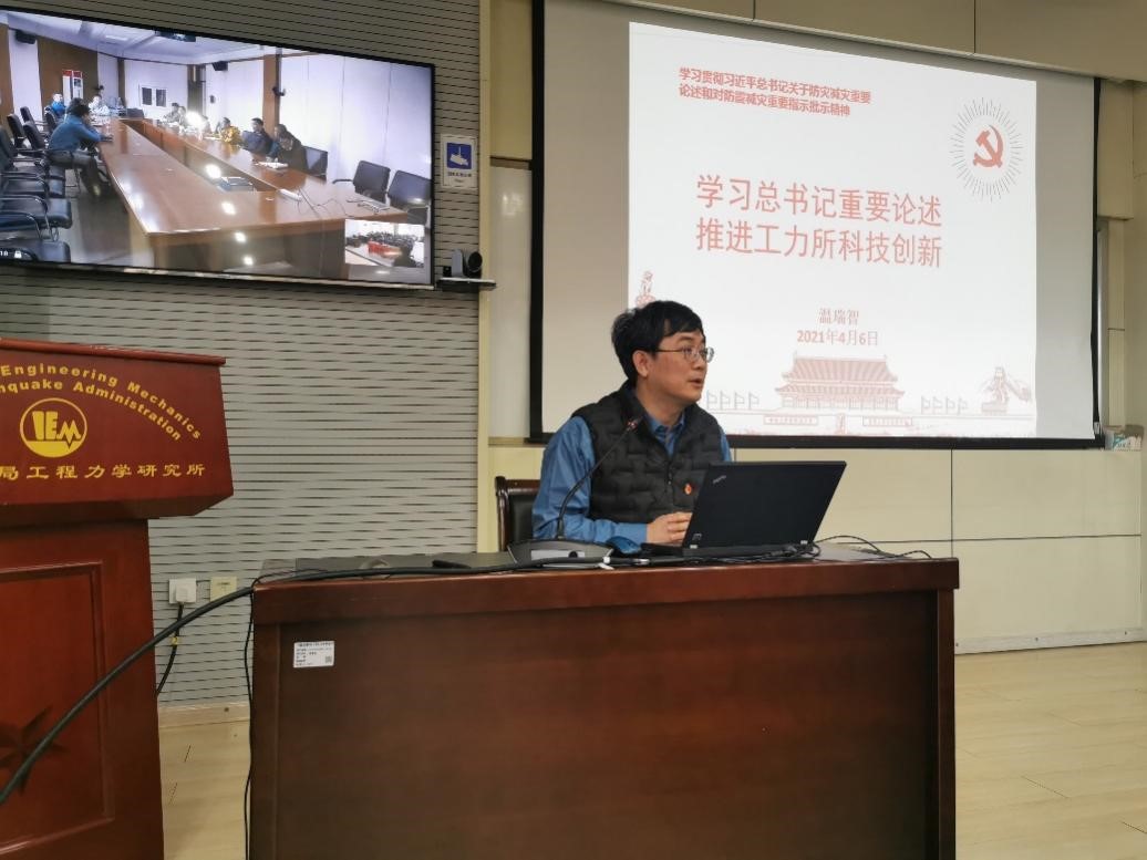 溫瑞智主任同與會科技人員一道共同學習了習近平總書記關于防災減災救災重要論述和防災減災救災重要指示批示精神,對創新在國家發展全局中處于核心地位分享了自己的認識和思考??萍紕撔乱獔猿终我I,貫徹落實習近平總書記“兩個堅持”“三個轉變”重要論述和“以防為主、防抗救相結合”的工作方針。溫主任結合我所科研工作實際,系統介紹了近年來科技創新工作取得的進展和成績,結合自然災害防治、韌性城鄉、地震應急和科考等生動地闡述了唯有科技創新才是推進防震減災事業現代化建設高質量發展的重要動力。最后,溫主任用“夯實監測基礎、加強預報預警、摸清風險底數、強化抗震設防、保障應急響應”作為培訓報告的結語,表達了工力所廣大科技工作者踐行“防震減災,造福人民”的初心使命。