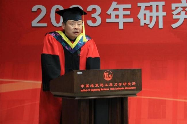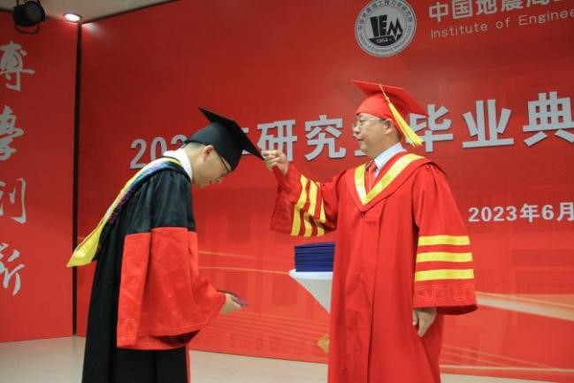 發布時間: 2023-06-30 點擊數量:79306月28日下午,中國地震局工程力學研究所2023年畢業典禮暨學位授予儀式在主樓四樓會議室隆重舉行。所學位評定委員會主任孫柏濤,黨委書記、所長李山有,黨委副書記張孟平,紀委書記孔繁鈺,副所長張令心、溫瑞智出席學位授予儀式。溫瑞智主持儀式。