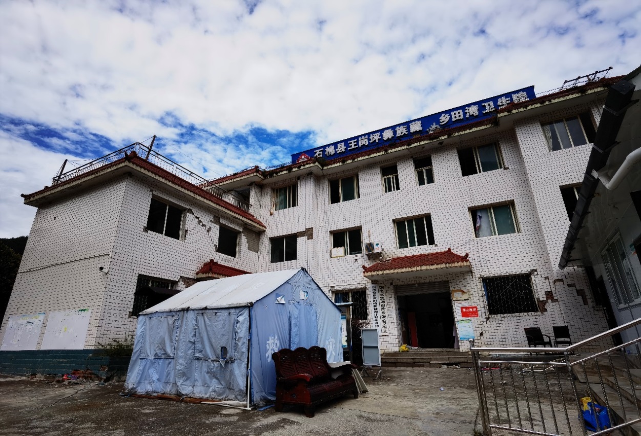 圖4 王崗坪彝族藏族鄉田灣衛生院(磚混結構、承重墻開裂歪閃、窗間墻出現明顯X裂縫)