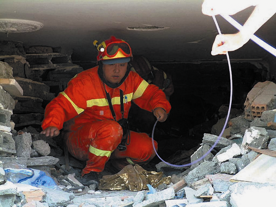 孫柏濤在汶川地震救援現場