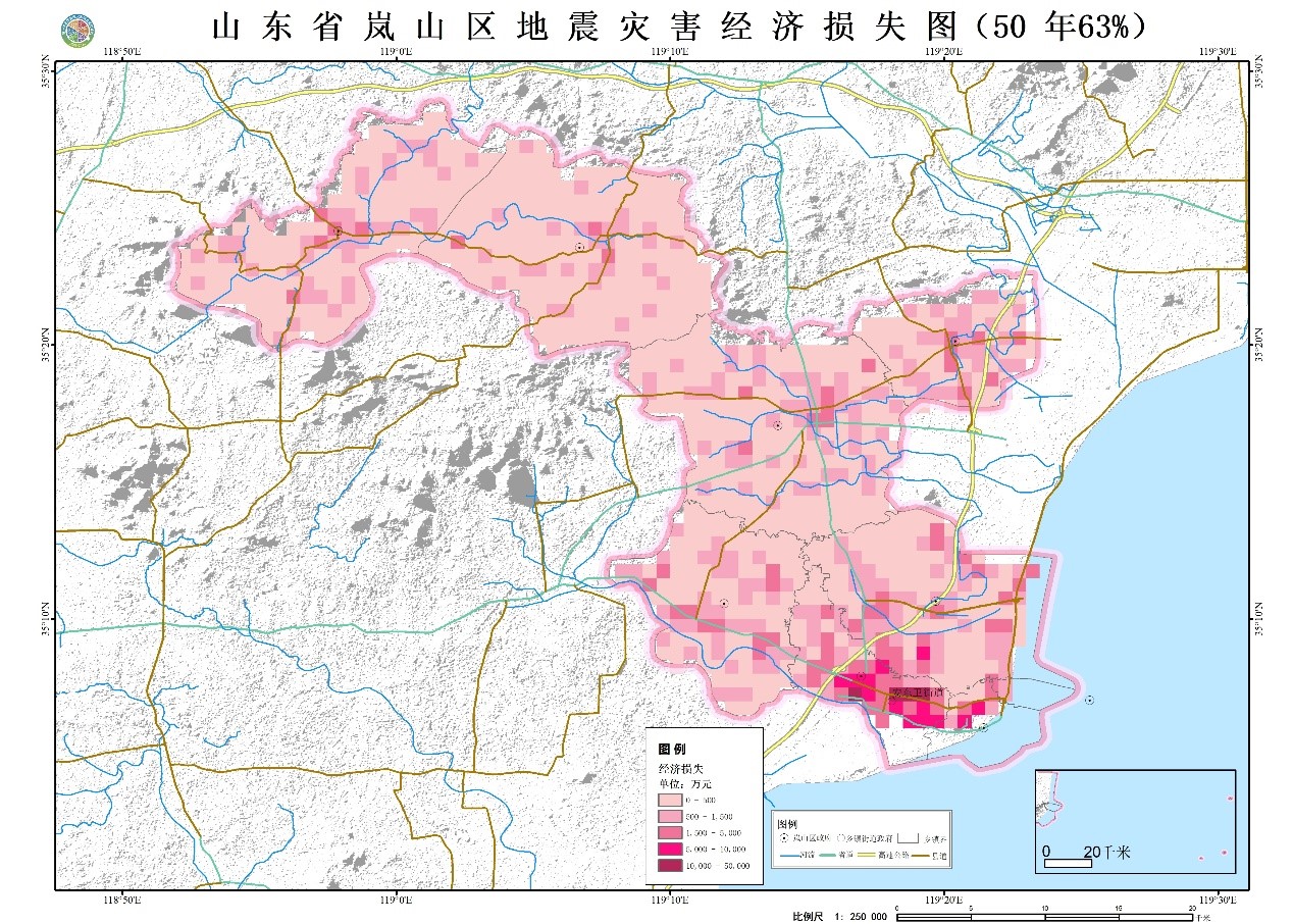 圖1 山東省日照市嵐山區地震災害經濟損失風險圖(50年超越概率63%)