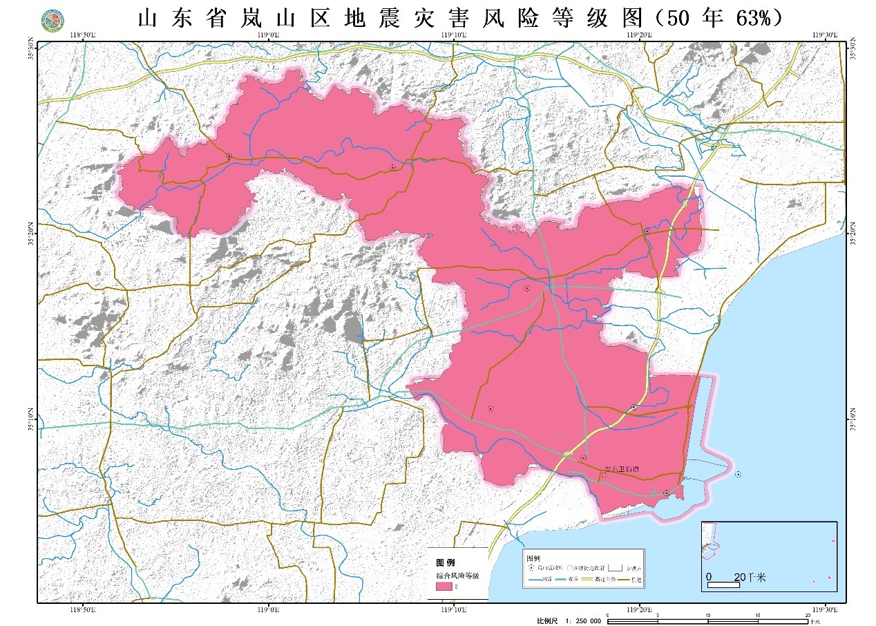 圖3 山東省日照市嵐山區地震災害風險等級圖(50年超越概率63%)