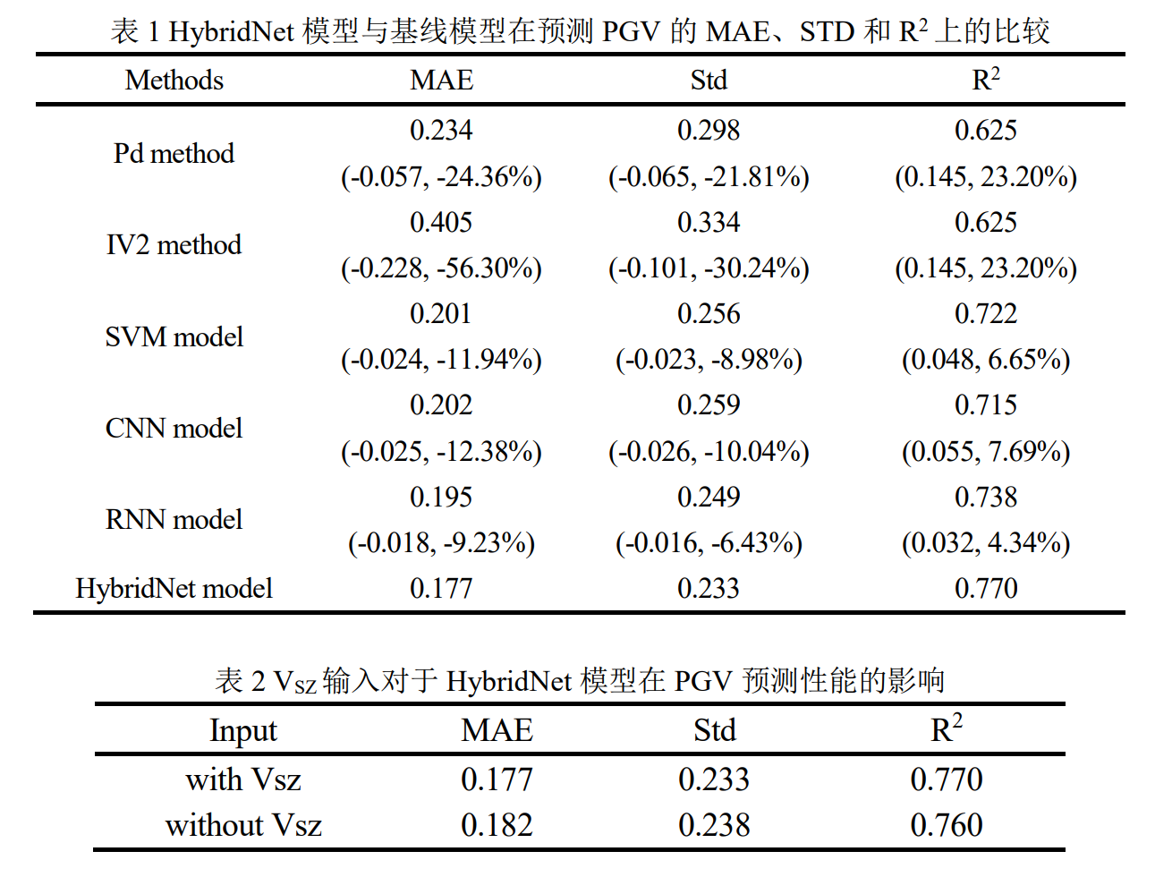 P波到達后1給出了Pd方法、SVM模型、RNN模型)的MAE)、標準差(R2)。表MAE、R2與MAE、R2之間的差值;括號里的第二個數字是MAE和HybridNet模型的1中可以發現:和基線模型相比,2展示了場地特征HybridNet模型結果影響,這表明場地特征HybridNet模型輸入可以提高模型的性能。 3)對于獨立于訓練集和測試集的M≥6.5),該工作分析了PGV對潛在破壞區域估計的可行性。圖P波到達后2中可以看到,基于PGV獲得的潛在破壞區域與ShakeMap有很好的一致性,且成功報警的準確性達到了