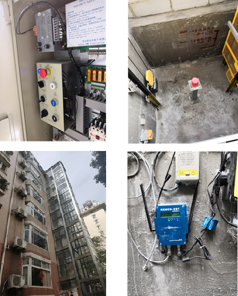 圖5 項目研發(fā)的電梯緊急地震開關(guān)及其在武漢尚隆地球村進行示范應(yīng)用情況